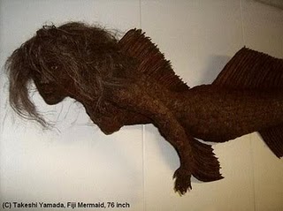 Fiji Mermaid, Fiji Mermaid sepanjang 6 kaki mirip putri duyung ditemukan di Shikoku, Jepang. Disebut Ningyo Shinko. Banyak tempat keramat agama Shinto dan kuil Budha mengabadikan mermaid ini sebagai makhluk suci.Orang datang untuk bersembahyang di tempat2 ini setiap hari.
